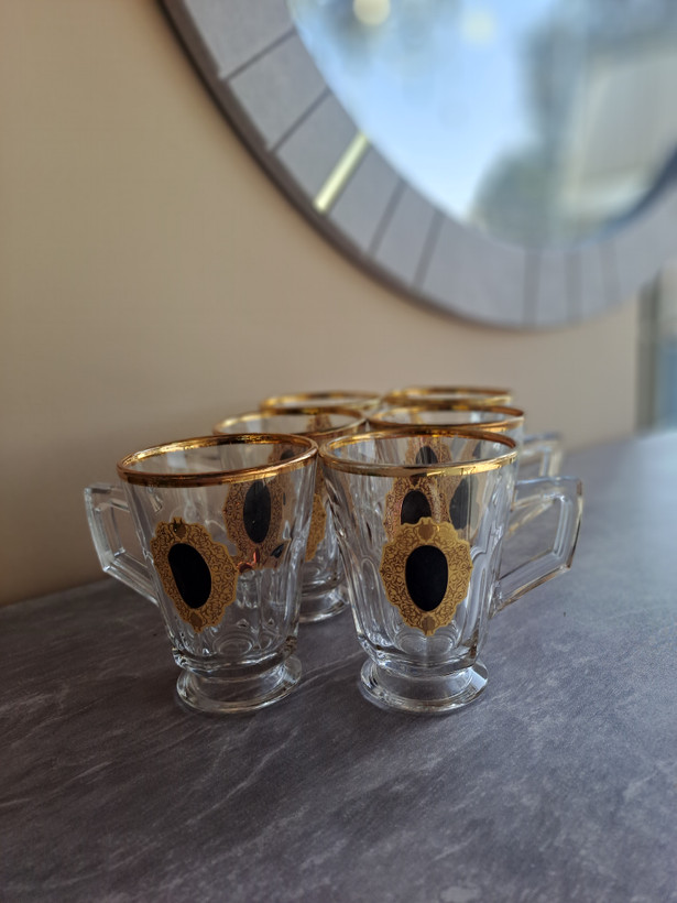 استکان لب طلا 6 عددی طرح دار مشکی انیکس