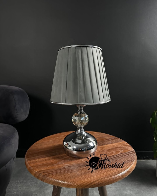 آباژور رو میزی تک گوی اشکی نقره کریستال شید ۱۴/۲۱ پیلیسه طوسی نقره