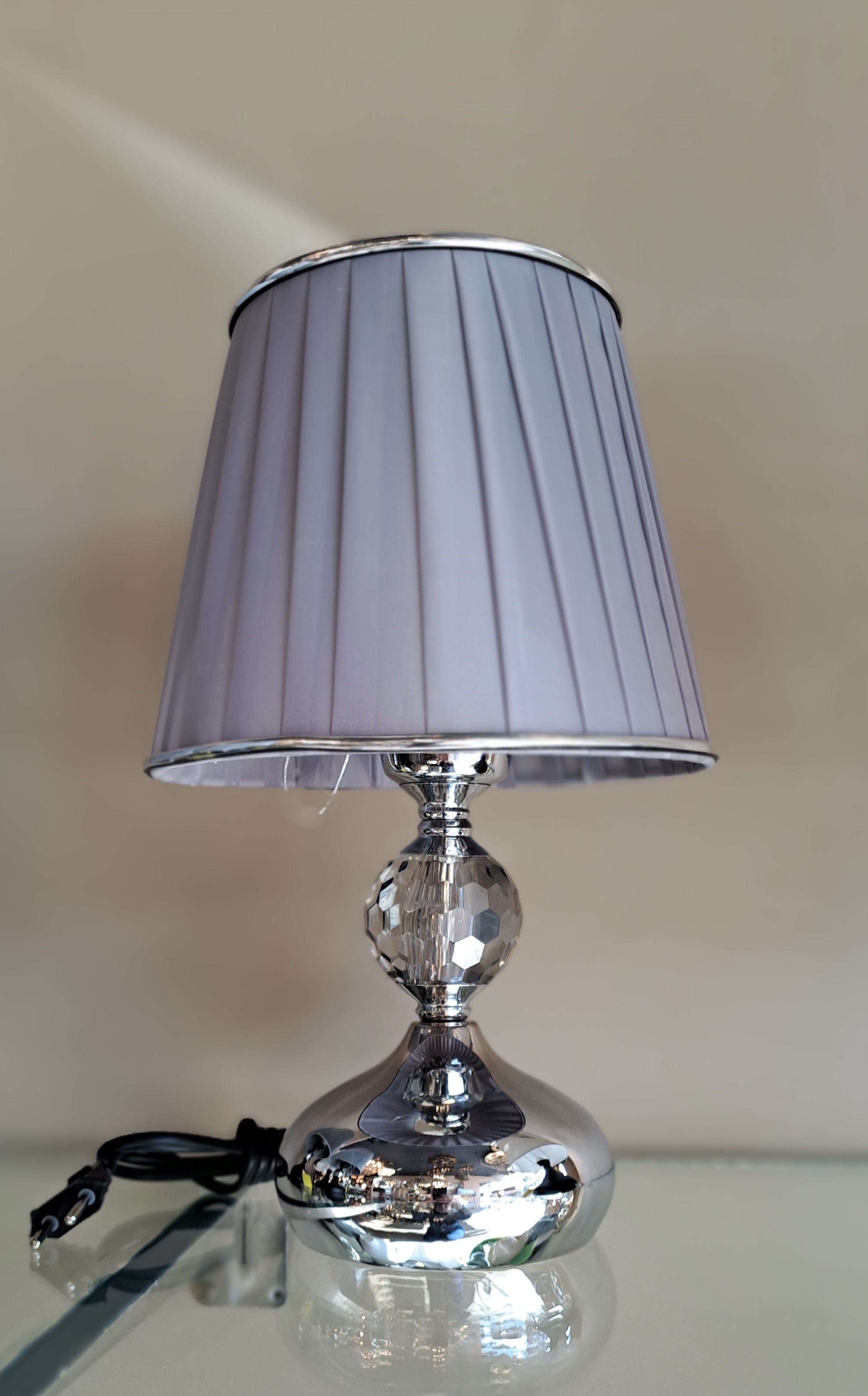آباژور رو میزی تک گوی اشکی نقره کریستال شید ۱۴/۲۱ پیلیسه طوسی نقره
