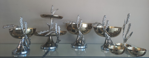 ست پذیرایی فلزی ۵ پارچ برگ انجیری سیلور