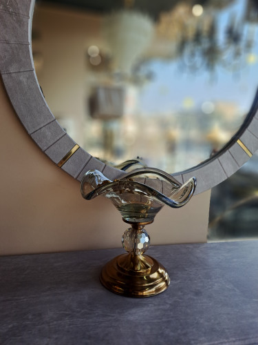 آباژور رو میزی تک گوی اشکی نقره کریستال شید ۱۴/۲۱ پیلیسه طوسی نقره