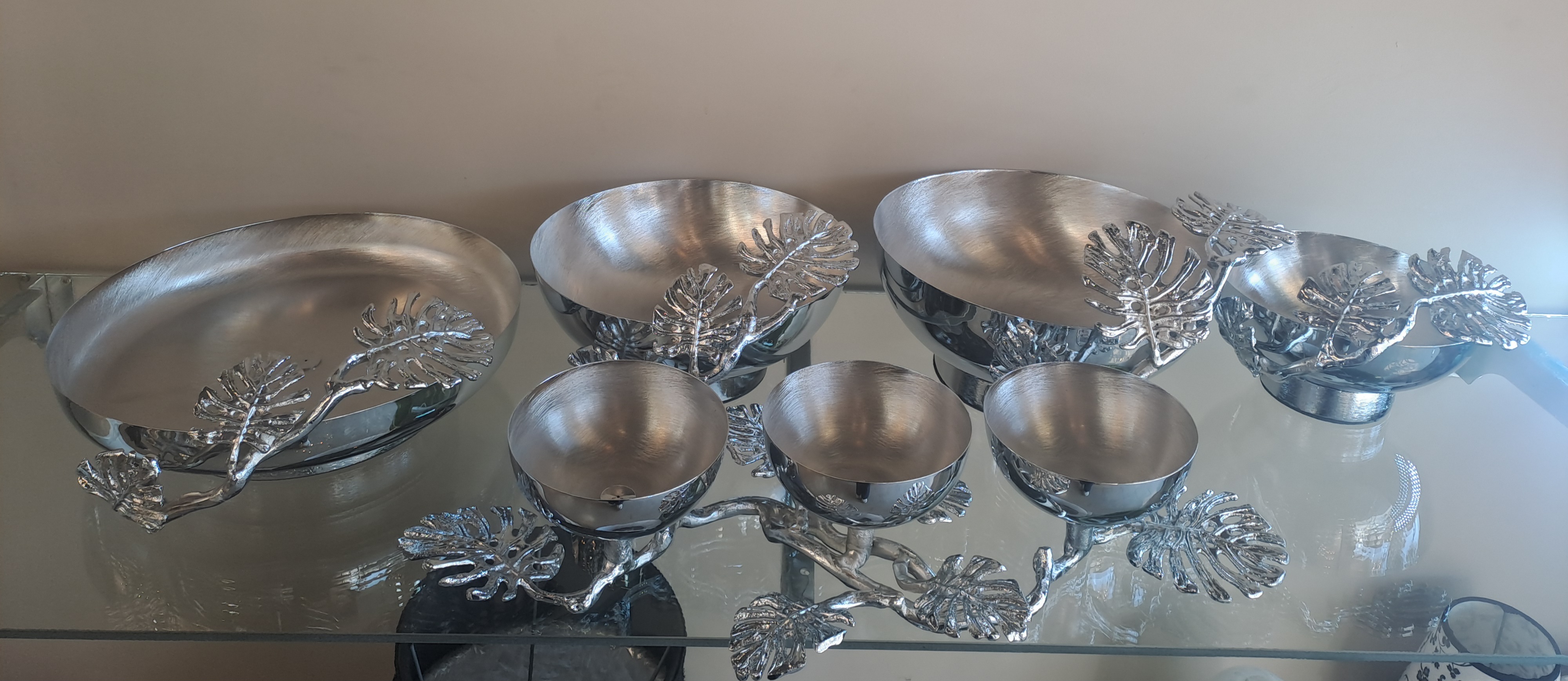 ست پذیرایی فلزی ۵ پارچ برگ انجیری سیلور
