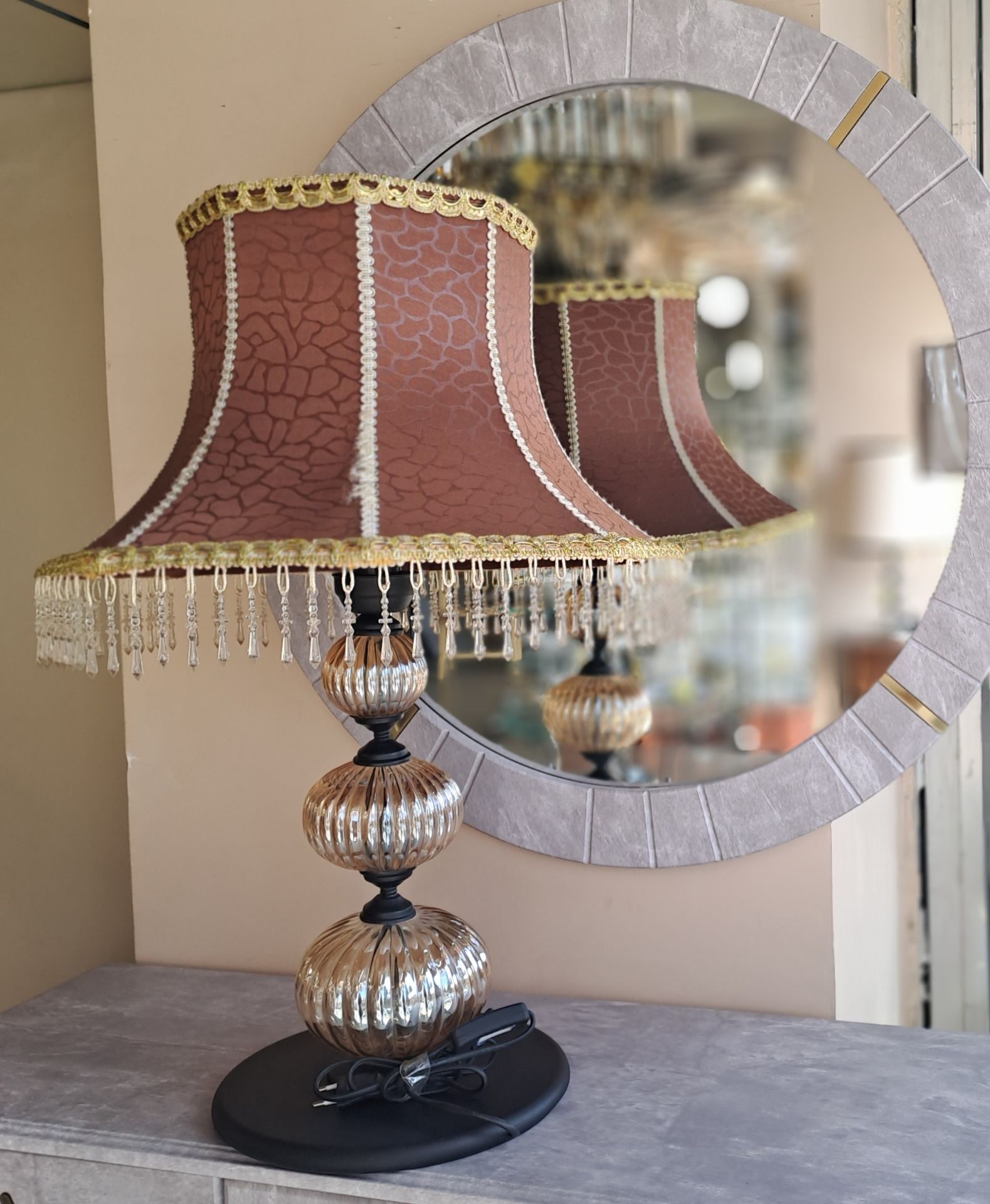 آباژور رو میزی تک گوی اشکی نقره کریستال شید ۱۴/۲۱ پیلیسه طوسی نقره